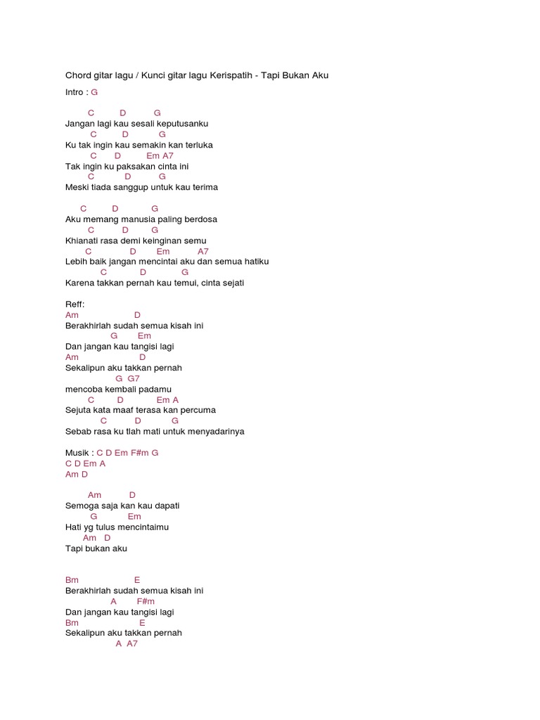 Chord Gitar Lagu Kerispatih Tapi Bukan Aku Pdf